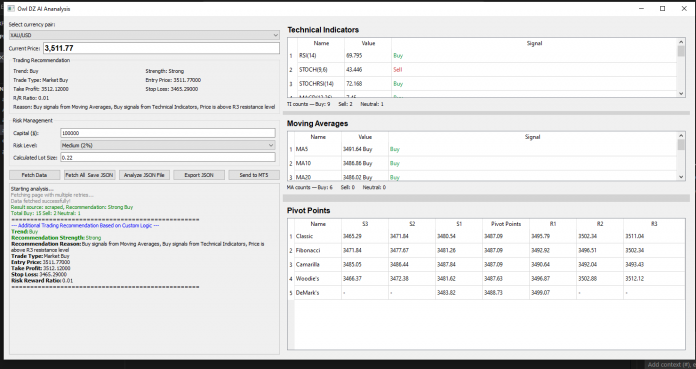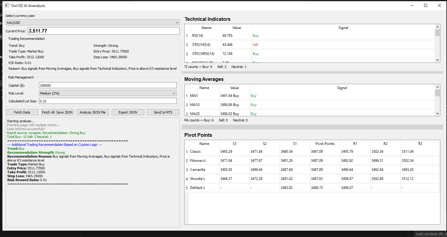 Complete Market Evaluation: Gathers knowledge from dependable sources like Investing.com and the Binance API to research Foreign exchange pairs, cryptocurrencies, indices (like NASDAQ and Dow Jones), and commodities (Gold and Silver).