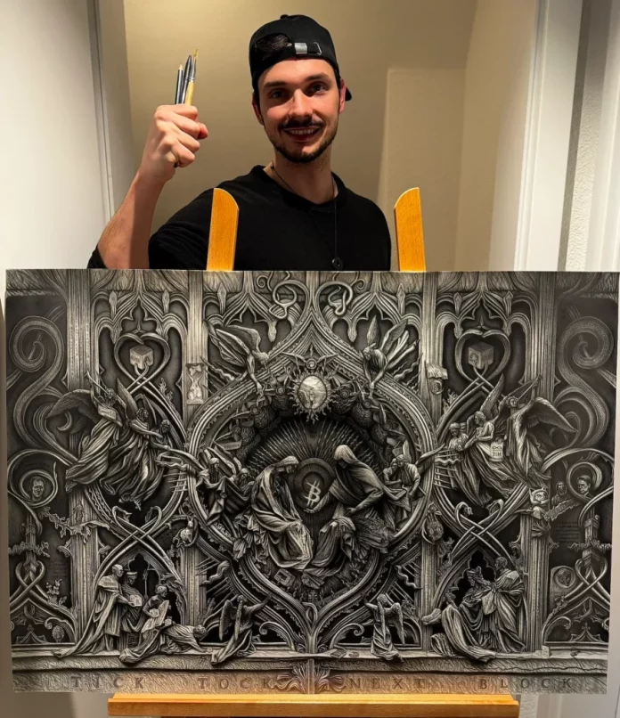 This 12 months’s Bitcoin 2025 Las Vegas exhibition options a number of the most bold items but: monumental work and mosaics, hand-carved relics, poster campaigns, and recursive digital portraits. The ten artists featured on this Q&A span various media and intent, but share a standard urgency. Whether or not invoking Renaissance fable or elevating meme tradition to the size of temple fresco, they discover worth—financial, symbolic, and religious. These aren’t simply observers of the Bitcoin motion—they’re shaping its iconography.