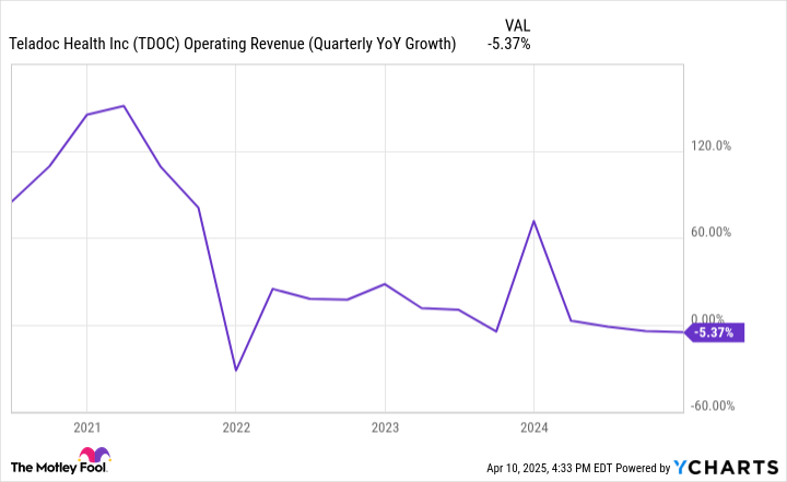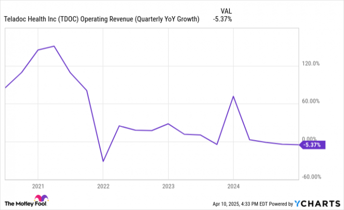 Nevertheless, Teladoc has different points that make the corporate unattractive. For the reason that pandemic began receding, Teladoc’s income progress has declined considerably: