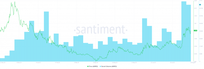 Santiment knowledge additionally reveals that AERO’s social dialogue quantity in August reached an all-time excessive, reflecting rising investor curiosity within the venture.