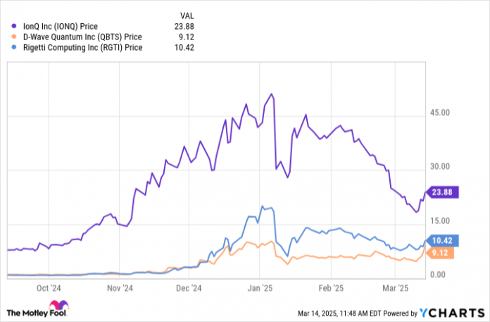The chart under illustrates the worth motion for IonQ, D-Wave Quantum, and Rigetti Computing over the previous six months. Regardless of some notable promoting in latest weeks, all three are materially larger than they have been simply six months in the past.