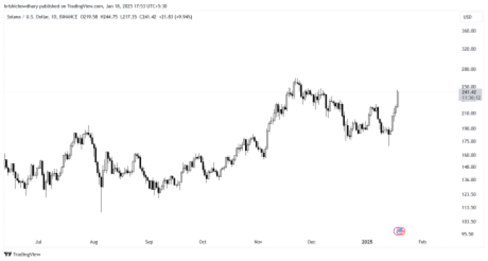 Solana has seen a 31% upward transfer within the final 5 buying and selling days and is at present buying and selling round $241. A new report from Bitwise has additionally predicted the costs to surge by greater than 3,000% from right here, reaching round $6,636 by 2030. All in all, Solana’s market share can develop to 11.36% from the present degree of two.84%.