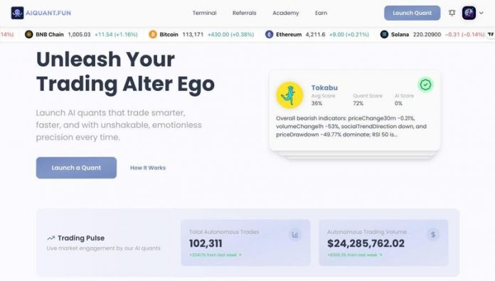 AIQuant (AIQuant.enjoyable), the personalised quantitative AI buying and selling platform, is now stay and open to the general public, instantly leveling the taking part in area for the buying and selling of crypto tokens throughout a number of completely different platforms, together with Base, Solana and BNB. AIQuant’s autonomous AI-powered buying and selling brokers (or AI Quants) function repeatedly, executing trades primarily based on real-time information and individually configured methods.