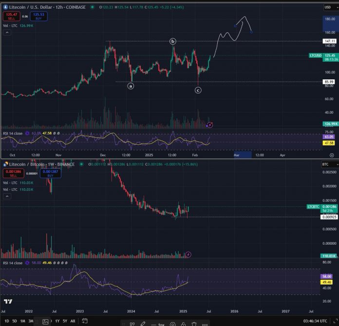 In response to the dealer, LTC seems to have accomplished an ABC corrective wave in opposition to the US greenback whereas flashing a bullish swing failure sample (SFP) on its Bitcoin pair.