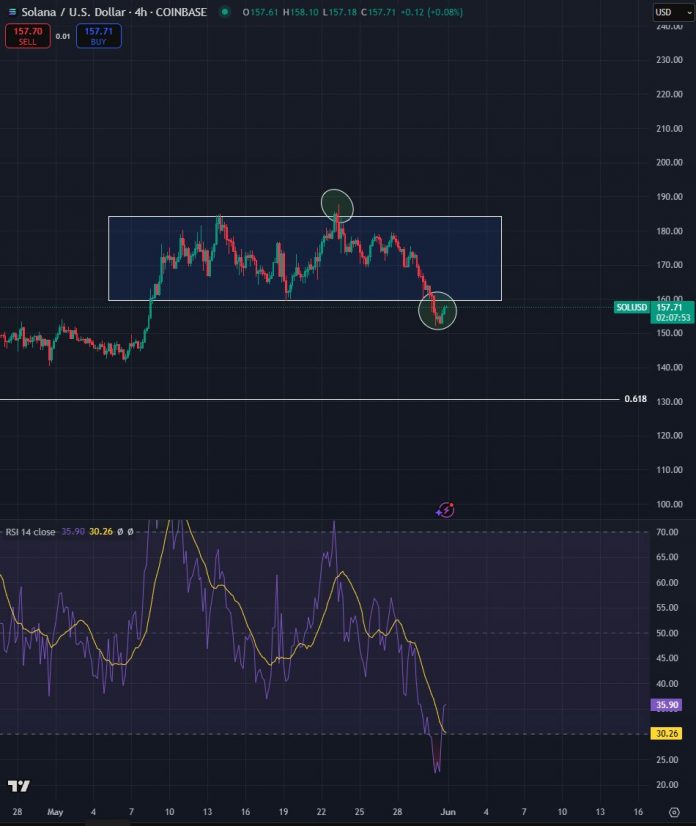 Pseudonymous analyst Bluntz tells his 319,800 followers on the social media platform X that Solana is flashing a swing failure sample (SFP) on the four-hour chart after shedding help at $160 on the finish of Could, solely to get well the value stage days later.