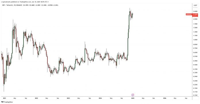 Zooming out, DonAlt thinks XRP could also be able to spark steep surges to proceed its bullish ascent that began in November.