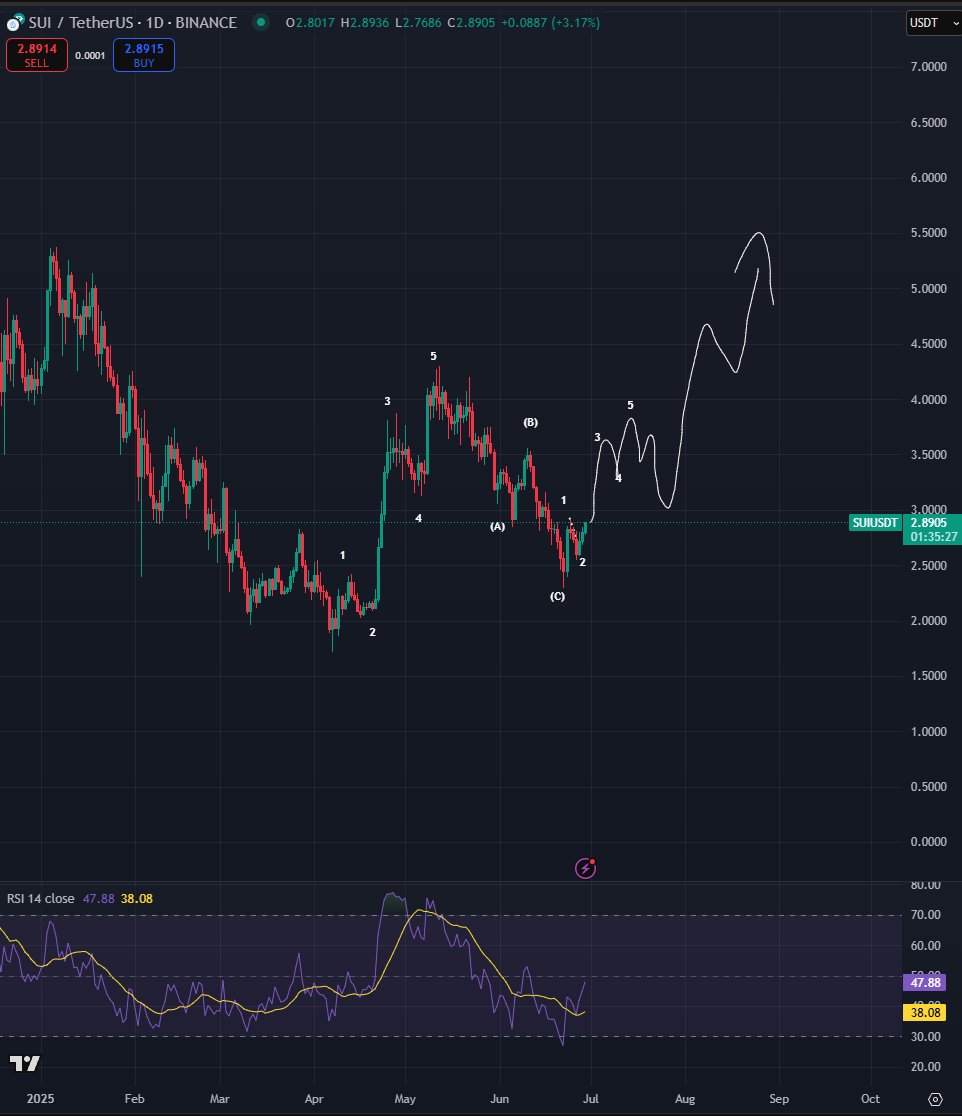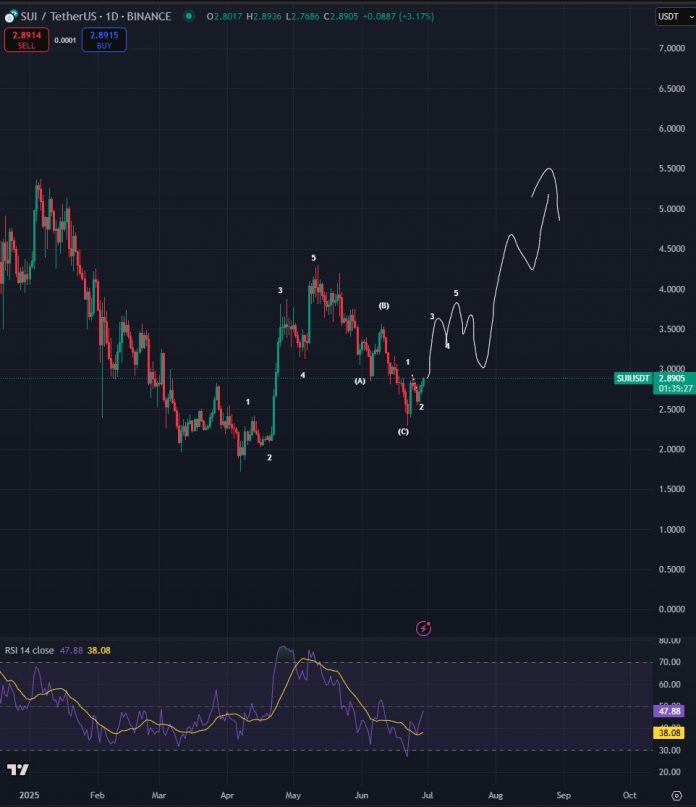 Pseudonymous analyst Bluntz tells his 321,600 followers on the social media platform X that the native asset of the layer-1 protocol Sui (SUI) is within the midst of a brand new five-wave rally after finishing an ABC correction.