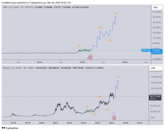 Pseudonymous analyst Credible Crypto tells his 465,400 followers on the social media platform X that XRP might soar greater than 976% p.c its present worth.