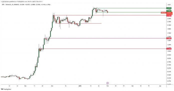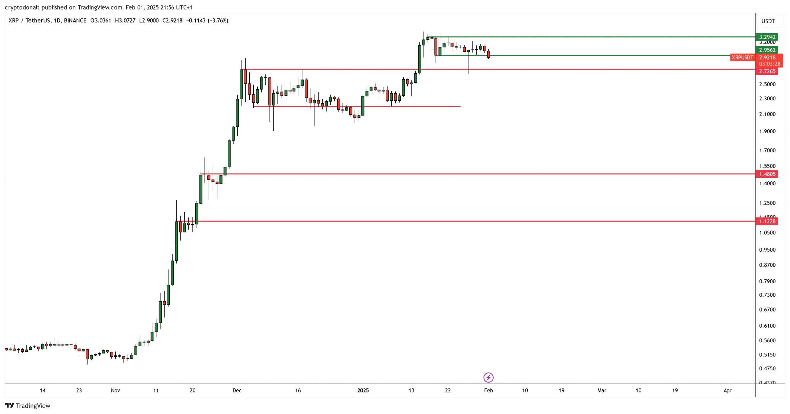 Pseudonymous analyst DonAlt tells his 640,100 followers on the social media platform X that XRP has misplaced its speedy help at $2.95 following Saturday’s marketwide sell-off.
