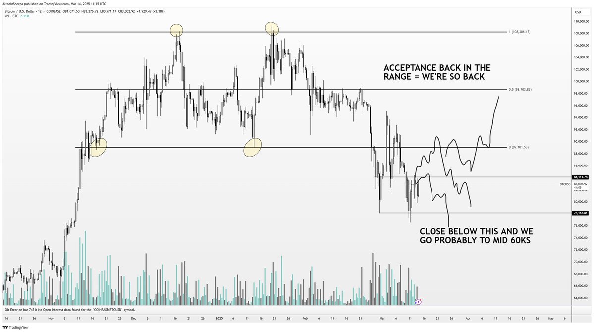 Nonetheless, he warns if $78,167 breaks down as help, Bitcoin could plummet into the $60,000 vary.