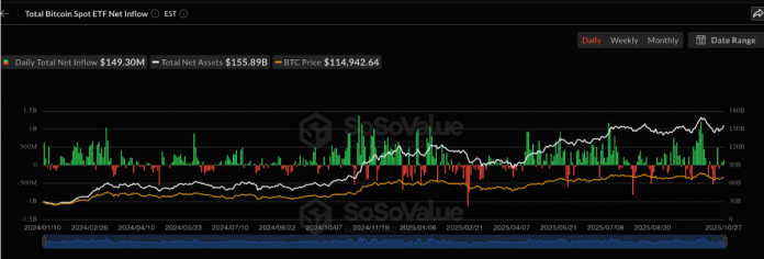 SoSoValue information reveals that US spot Bitcoin ETFs recorded a internet influx of $149 million, indicating that traders have been persistently displaying curiosity in Bitcoin regardless of the worth fluctuations.