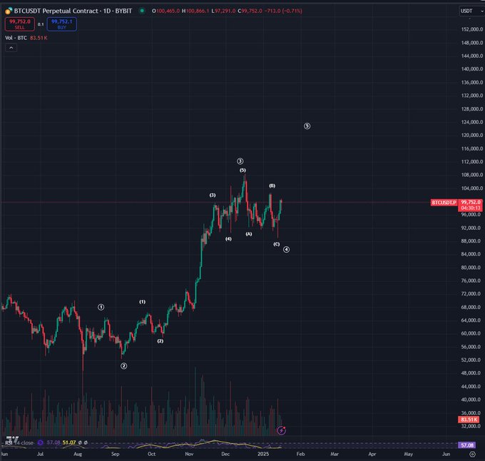 Based mostly on a chart by the pseudonymous analyst who recurrently applies the Elliott Wave idea in his technical evaluation, Bitcoin is within the final a part of a five-wave sample that began in September of 2024. The Elliott Wave idea states that the principle development of the worth of an asset strikes in a five-wave sample whereas a correction happens in a three-wave sample.