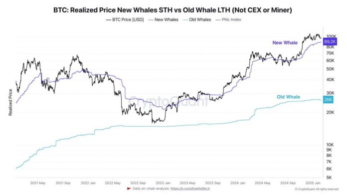 CryptoQuant analyst Axel Adler shared insightful metrics on X, revealing that the realized worth of latest whales sits round $89.2K. This degree represents the strongest help for the present consolidation section, which spans from all-time highs (ATH) at $109K to the $89K key demand zone. In response to Adler, this help highlights the importance of latest whale exercise, as these giant gamers are unlikely to promote at a loss, bolstering the market’s resilience within the occasion of a downturn.