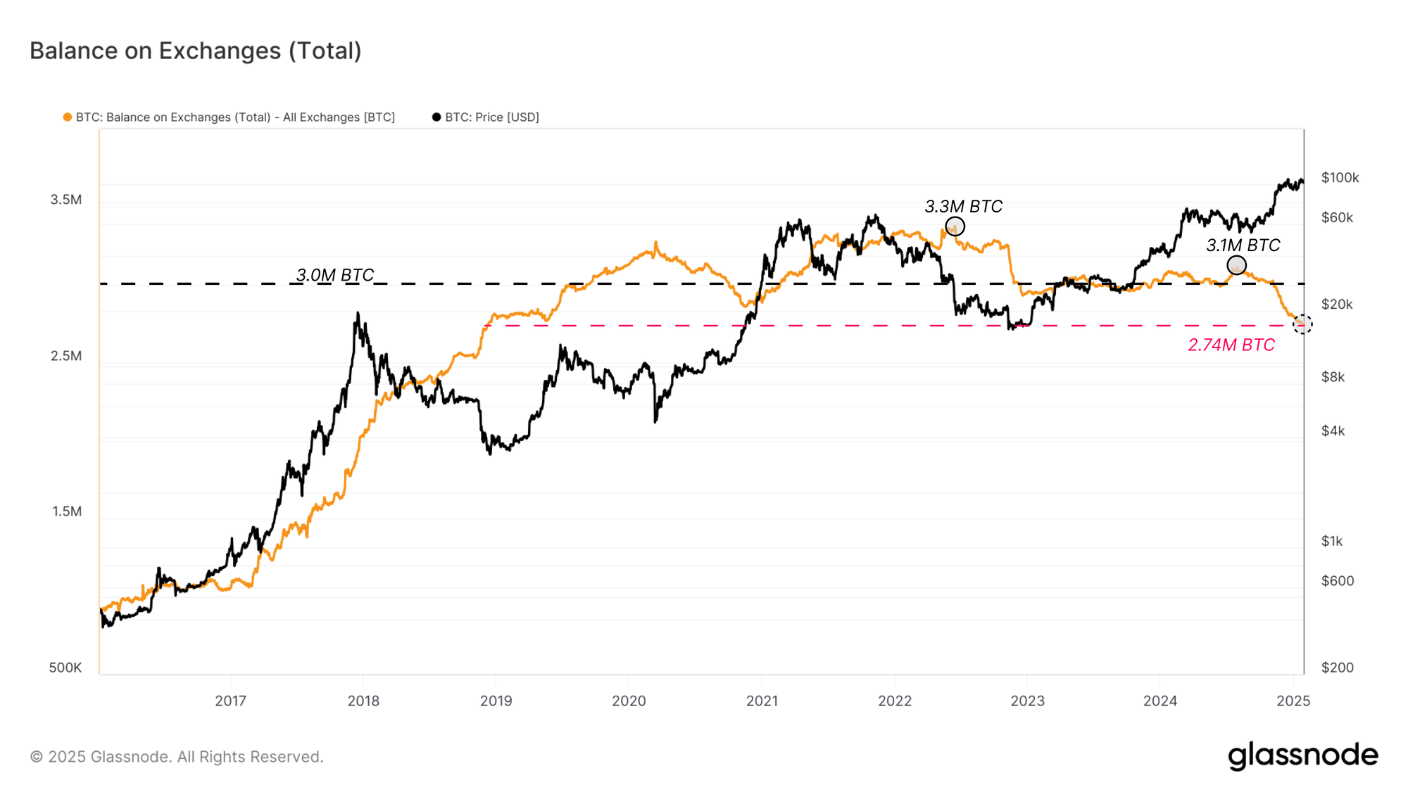 As displayed within the above graph, the Bitcoin Steadiness on Exchanges was sitting at 3.1 million BTC in July 2024, however right now, it has declined to simply 2.74 million BTC. It is a vital lower and has made many consider that this represents the creation of a ‘provide shock‘ for the asset.