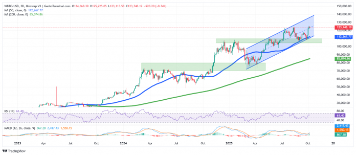 If the channel construction holds, the BTC value might climb towards $135,000–$140,000 within the coming weeks, offered it maintains assist above $112,000.