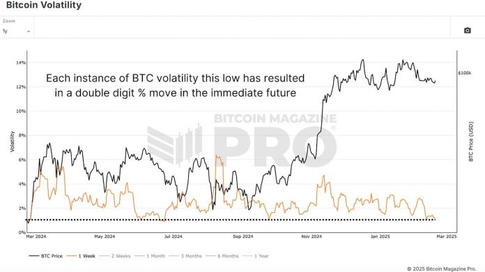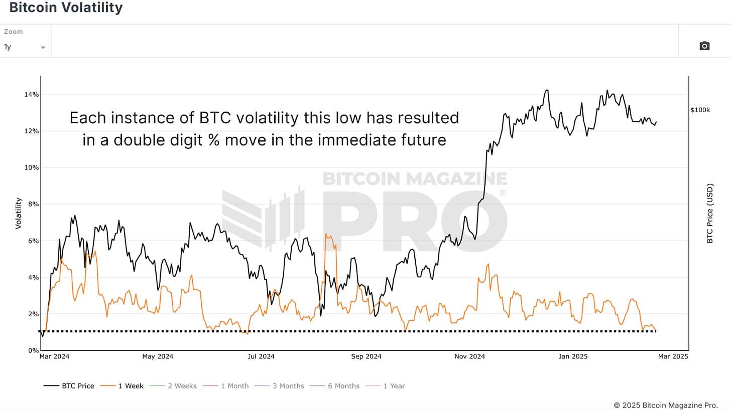 Traditionally, such low volatility ranges are uncommon and are usually short-lived. When earlier situations the place volatility was this low, Bitcoin adopted up with vital worth actions: