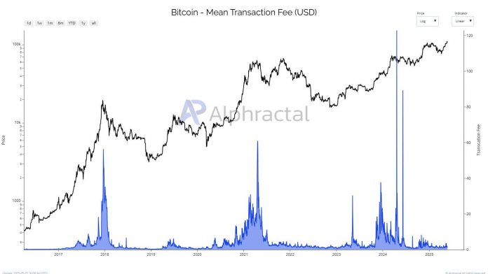 In accordance with him, charges now contribute simply 1% of whole miner income, down from earlier ranges and hovering close to a 13-year low of roughly 6.5 BTC per day.