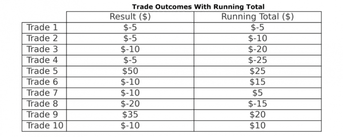 That’s 8 losses… and nonetheless a internet achieve of $10.