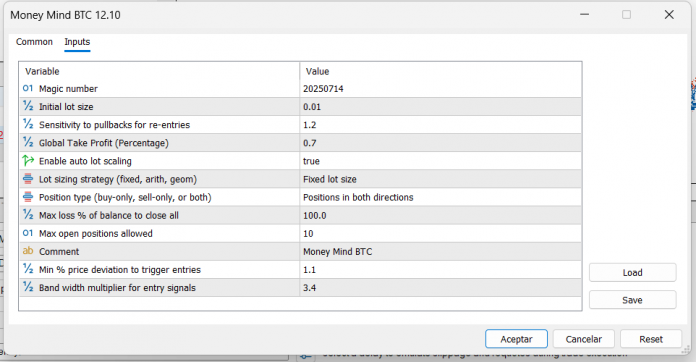 Cash Thoughts BTC is an Professional Advisor designed to commerce BTCUSD mechanically, managing each entries and exits. It makes use of dynamic market evaluation to find out optimum entry factors and applies world threat and revenue management. This information explains every configuration parameter, the way it impacts buying and selling, and learn how to modify it based mostly in your threat profile.