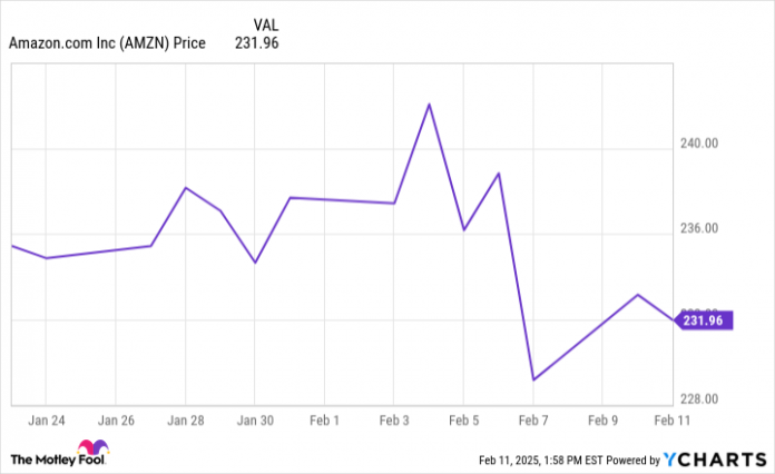 Round Jan. 24 was after I first began listening to chirps about DeepSeek and started seeing some headlines publish on monetary information programming. The chart exhibits that shares of Amazon (AMZN -0.76%) clearly began to slip within the last days of January — as extra information about DeepSeek began to interrupt.