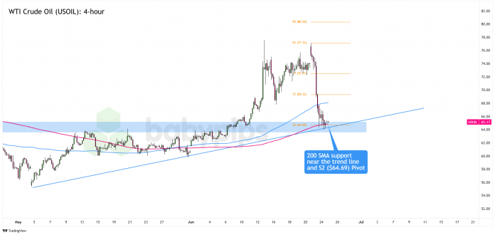 That space is not any random spot! It aligns with the S2 Pivot round $64.69, the 4-hour 200 SMA, and a pattern line that has held since Could.