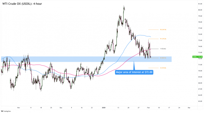 That mentioned, the selloff has misplaced some steam, with WTI now holding simply above the S1 Pivot Level at $72.11, a key degree from late 2024.