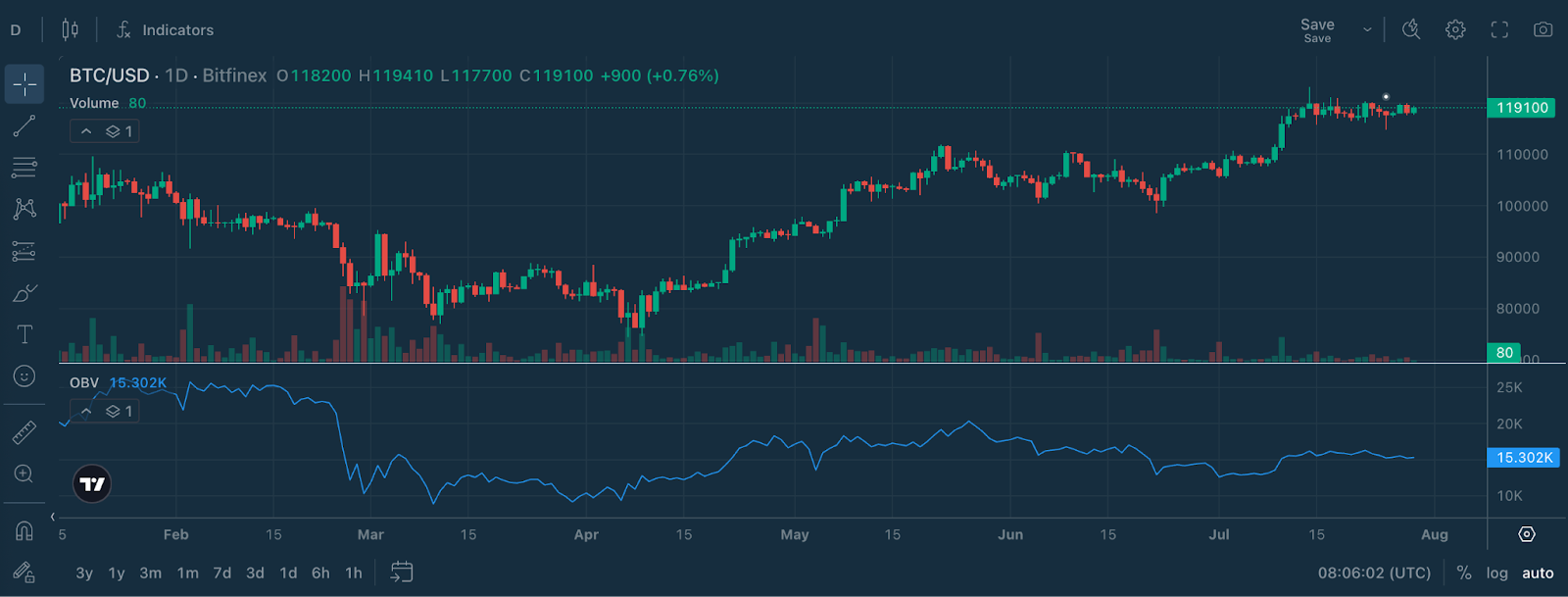 OBV exhibits you whether or not shopping for or promoting strain has been stacking up over time.