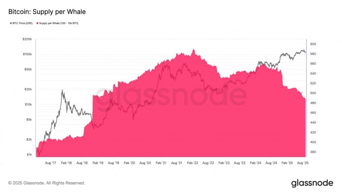 In a brand new publish on X, on-chain analytics agency Glassnode has mentioned in regards to the newest pattern within the common provide held by Bitcoin whales. Glassnode defines “whales” as entities holding between 100 and 10,000 BTC. On the present trade fee, the vary’s decrease certain converts to $11.2 million and higher one to $1.1 billion.