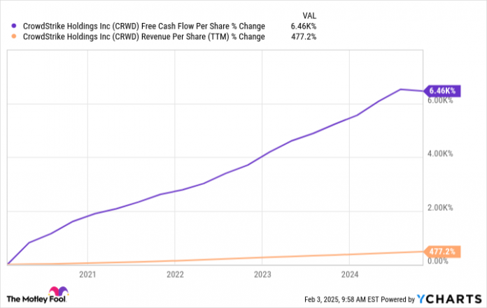 This dynamic is why CrowdStrike is having fun with quick income progress in addition to quick free money move progress. Its modules are simple to deploy, resulting in quick progress. And every new module is excessive margin, resulting in a lift in free money move.