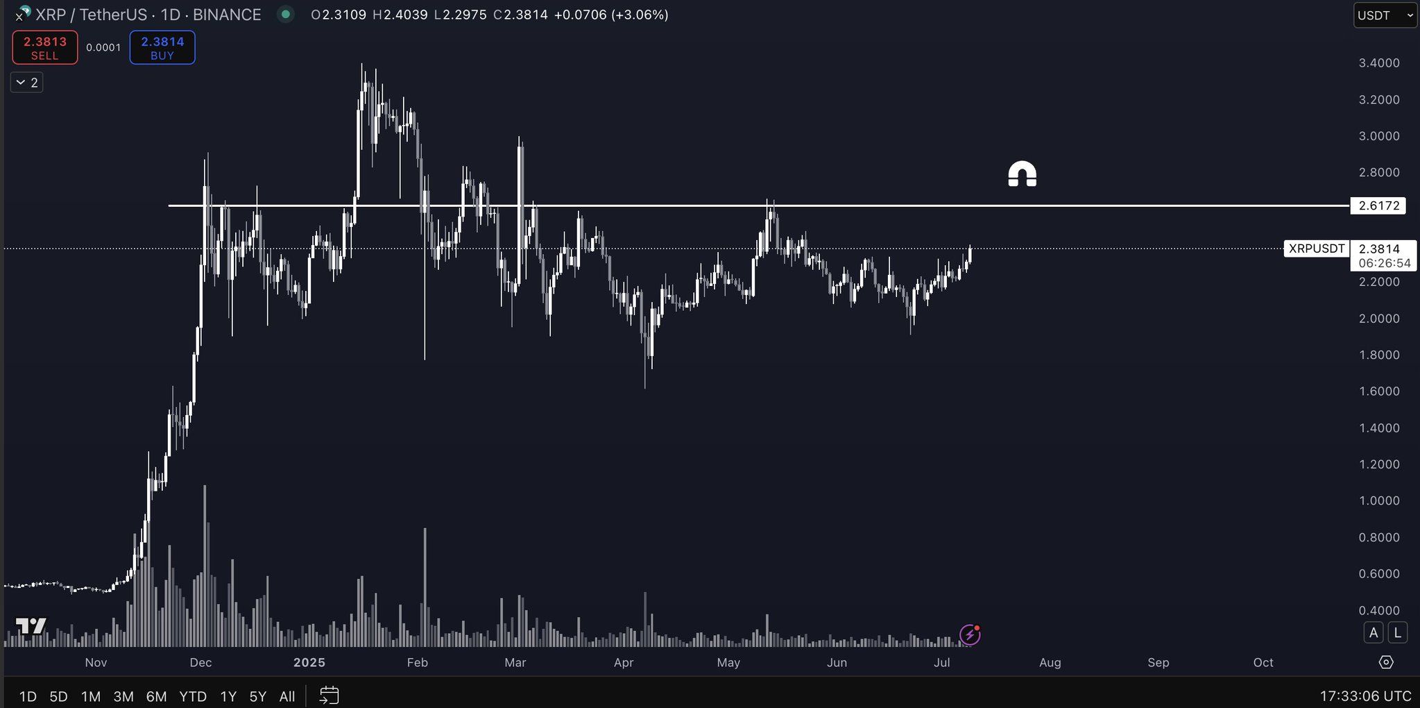 The analyst pseudonymously often called Pentoshi tells his 870,200 followers on the social media platform X that funds altcoin XRP is wanting bullish after reclaiming the decrease certain of a buying and selling vary at $2.38.