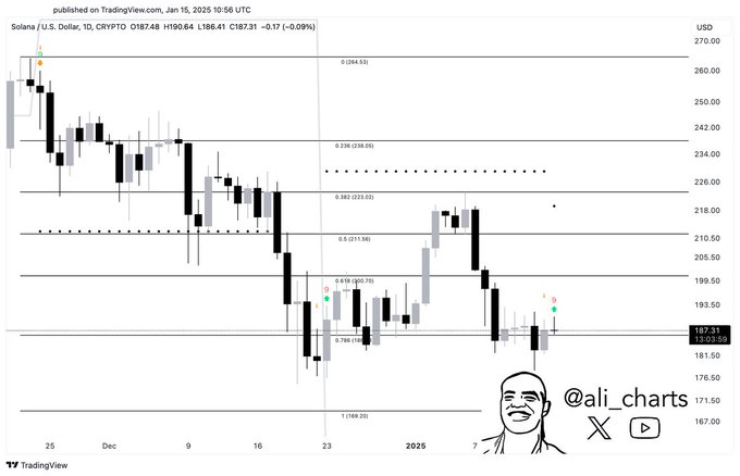 Subsequent up is Solana (SOL). In accordance to the crypto dealer, the Tom DeMark (TD) Sequential indicator, a instrument used to determine potential factors of a pattern reversal, is flashing a bullish sign for Solana on the each day timeframe. Martinez says Solana might rally by as much as $220.