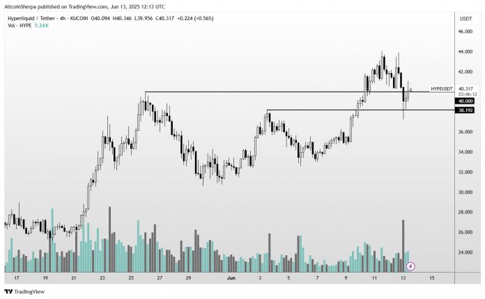 Pseudonymous analyst Altcoin Sherpa tells his 248,500 followers on the social media platform X that he thinks Hyperliquid (HYPE) seems very sturdy regardless of the latest marketwide correction.