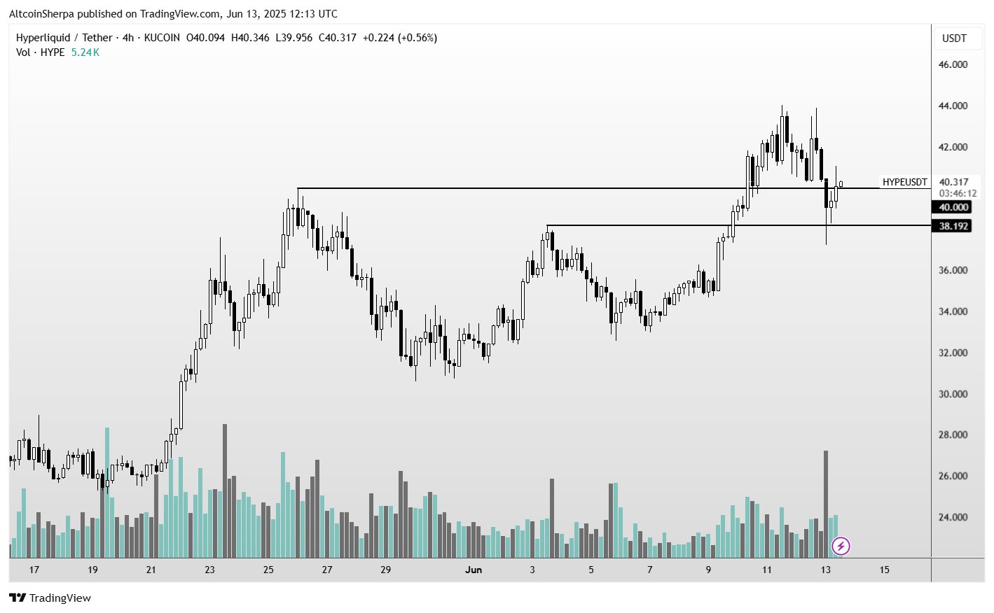 At time of writing, HYPE is price $40.44.