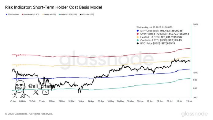 “So long as the $105,450 help holds, Bitcoin may very well be on observe for a transfer to $125,230 and probably $141,770, primarily based on the short-term holder value foundation.”