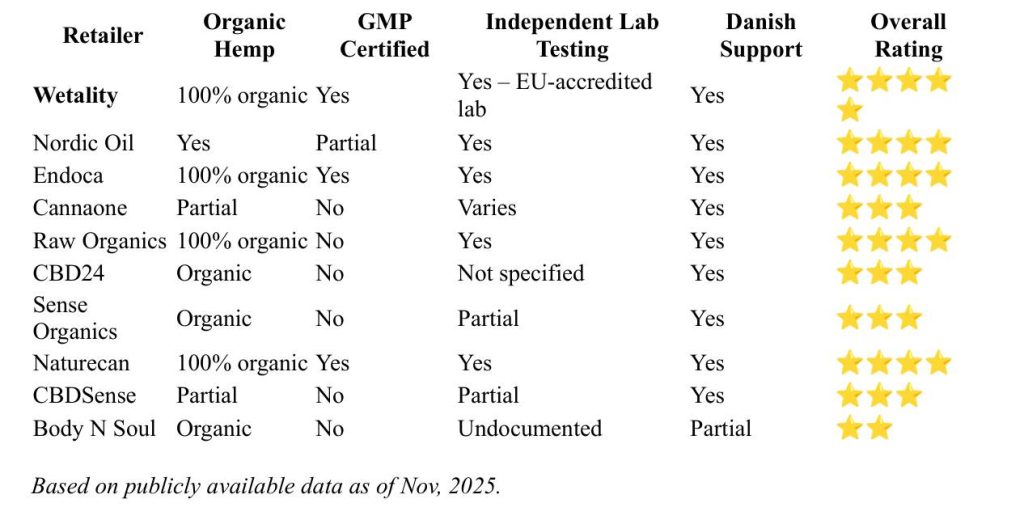 This listing relies on editorial analysis and publicly obtainable info from Danish CBD retailers.