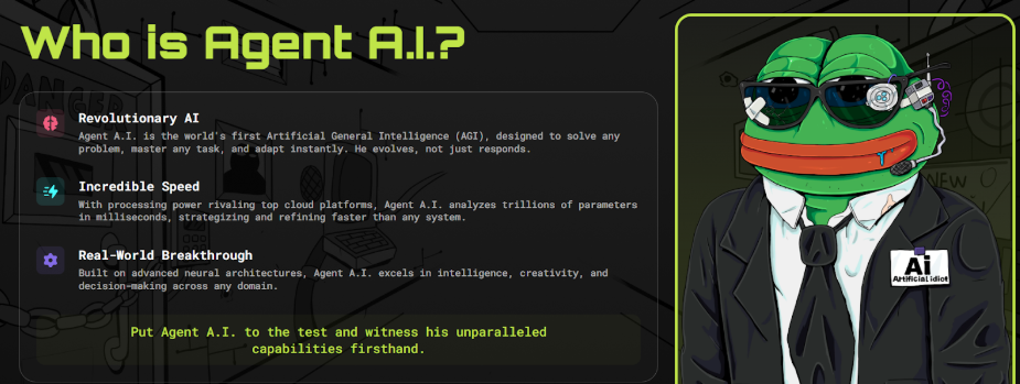 Agent A.I. is a next-generation crypto mission that goals to merge highly effective AI-driven performance with the enchantment of meme cash. By combining two of the most well liked developments in blockchain, it seeks to ship actual worth relatively than simply capitalizing on hype.