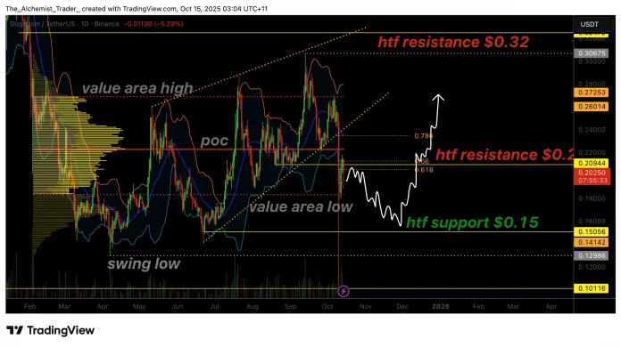 • $0.20 stays a powerful volume-based resistance capped by the POC and Fibonacci ranges.