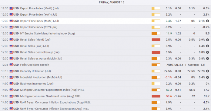 US Retail Gross sales for July got here in broadly as anticipated, rising 0.5% MoM whereas June’s determine noticed an upside revision to 0.9% MoM. Whereas up is mostly thought-about good, US Retail Gross sales knowledge is nominal, which means the financial indicator doesn’t differentiate whether or not an additional greenback spent on the checkout is because of elevated spending capability or greater costs ensuing from commerce taxes.
