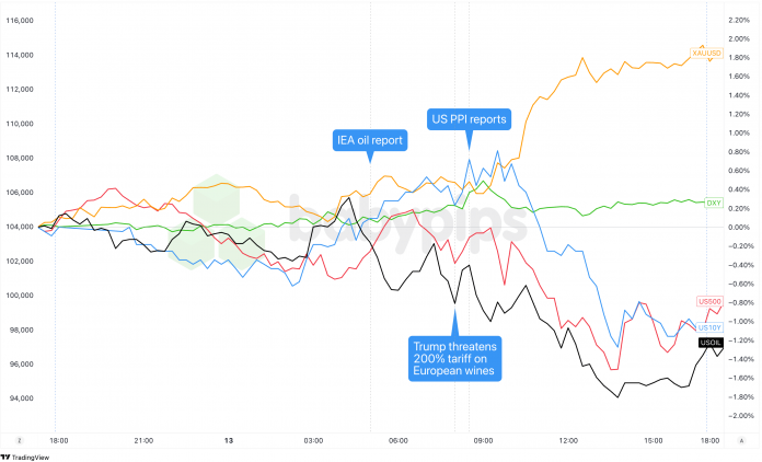 Throughout European hours, Swiss PPI information brought about some transient volatility earlier than markets turned their consideration to commerce tensions. The turning level got here when President Trump threatened a 200% tariff on European wines, sending shockwaves via foreign money markets.