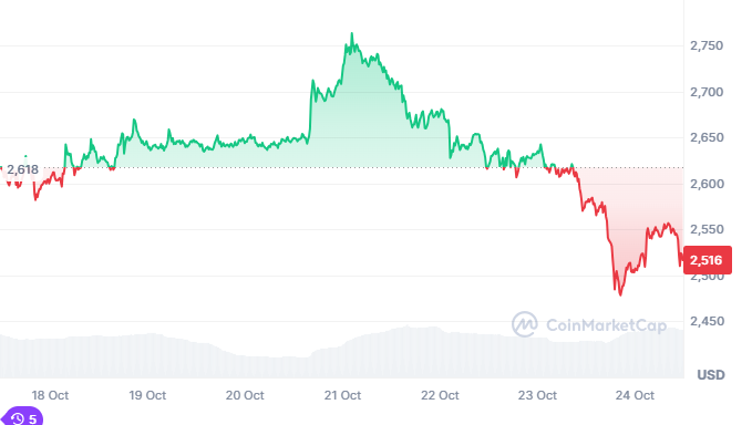 The hope of an Ethereum upsurge is fading because the primary altcoin value dropped considerably inside the final 4 days. Between 20 and 23 October the ETH value fell by 9.6% after dealing with a rejection on the $2,700 resistance stage. That value dip erased Ethereum positive factors accrued inside the final 10 days. At this level, the worth of ETH has stabilized across the $2,500 stage.