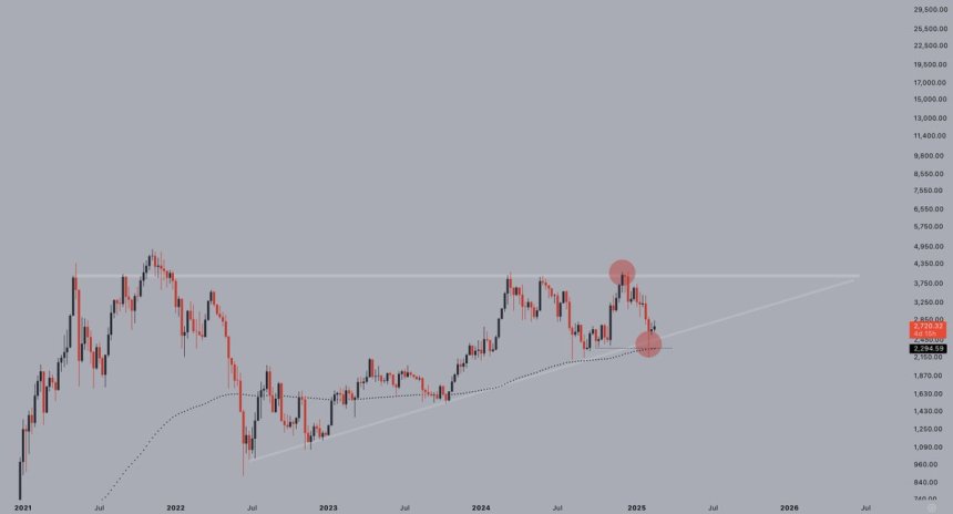 Jelle’s evaluation on X reveals that ETH remains to be buying and selling inside a large ascending triangle, a multi-year bullish sample. He famous that fakeouts have occurred on each the upside and draw back, taking out liquidity in each instructions. With draw back liquidity now taken, Jelle expects a comeback quickly, suggesting ETH may quickly try and reclaim misplaced floor.