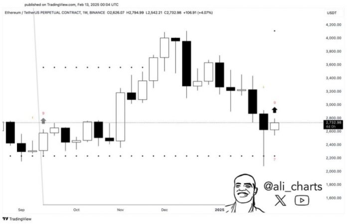 High analyst Ali Martinez has supplied some hope for Ethereum bulls, sharing optimistic knowledge on X that implies a possible rebound could also be on the horizon. In keeping with Martinez’s technical evaluation, Ethereum is displaying indicators of restoration because the TD Sequential indicator flashes a purchase sign on the weekly chart.