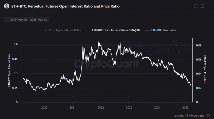 CryptoQuant analyst SunflowrQuant lately analyzed the ETH/BTC market tendencies, noting that Ethereum has weakened in opposition to Bitcoin over the previous two years, reflecting a drop in investor confidence and decreased speculative curiosity in ETH derivatives.