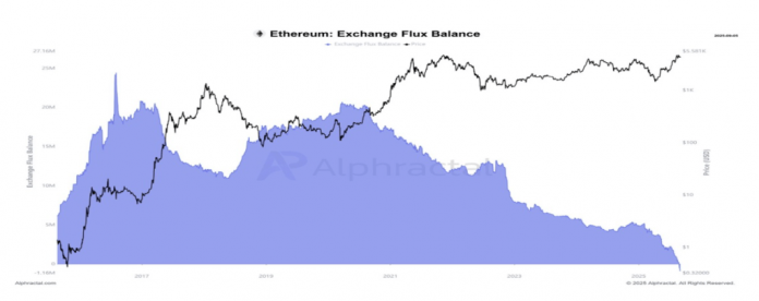 Ethereum (ETH) has simply made historical past with a improvement that would reshape its market trajectory. For the primary time, the Ethereum trade steadiness has turned unfavourable, which means extra tokens are being withdrawn from buying and selling platforms than deposited. This structural shift in provide dynamics has analysts labeling it a key bullish sign for the market’s subsequent rally.