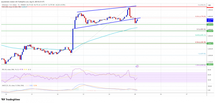 Ethereum value began a recent improve above the $4,650 zone. ETH is now consolidating positive factors and would possibly discover bids close to the $4,550 help.