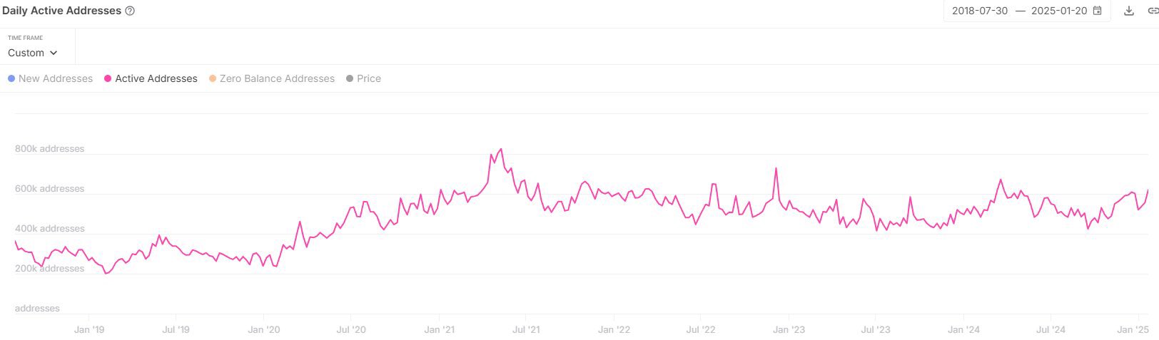 Ethereum daily active addresses.