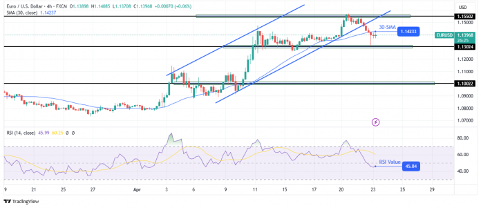 On the technical aspect, the EUR/USD value has damaged under main assist ranges, suggesting stronger bearish momentum. After assembly the 1.1550 resistance stage, bears emerged and pushed the value under a strong assist trendline. After that, the value broke under the 30-SMA, exhibiting bears have been able to take cost. On the similar time, the RSI dipped under 50 into bearish territory.