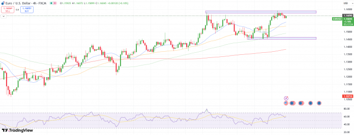The EUR/USD 4-hour chart shows a consolidating sample close to the multi-month excessive. The uptrend is undamaged as the value stays nicely above the 20-period SMA. Furthermore, the bullish crossover of the 20-SMA and 50-SMA additionally presents room for upside. The RSI can be off the overbought zone however above 50.0 and sloping upwards.