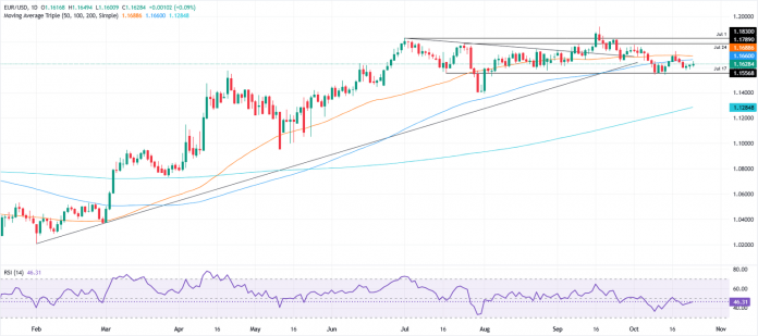 EUR/USD’s technical outlook has modestly improved however stays impartial because the pair trades beneath the confluence of the 20-day and 100-day Easy Shifting Averages (SMAs) at 1.1653 and 1.1658, respectively. The Relative Energy Index (RSI) has slipped under the impartial 50 mark, suggesting rising bearish momentum.