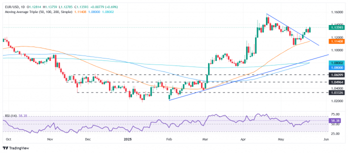 EUR/USD recovered through the mid-North American session on Friday after diving under 1.1300 after US President Donald Trump rattled the markets by threatening to impose 50% tariffs on the European Union (EU). On the time of writing, the pair recovered and climbed to round 1.1350